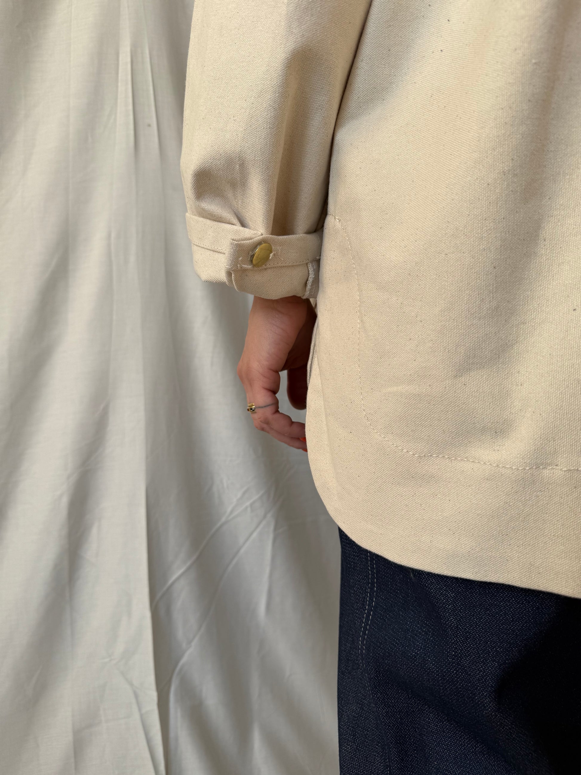 Inspired by early 20th-century utility wear, this jacket is cut from 15 oz 100% cotton canvas — stiff, structured, and built to break in like a second skin.