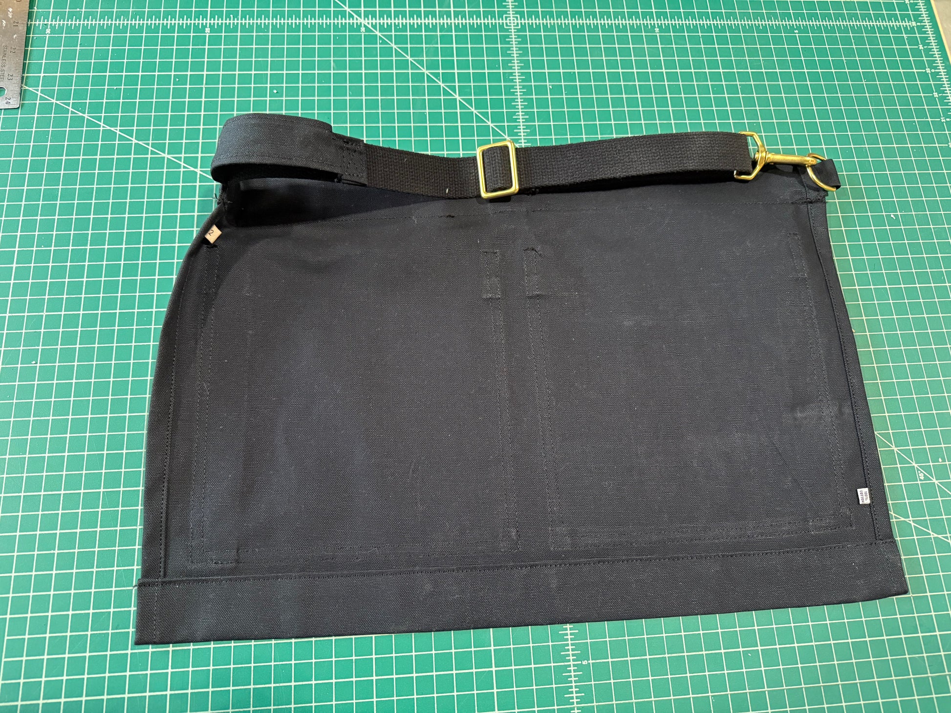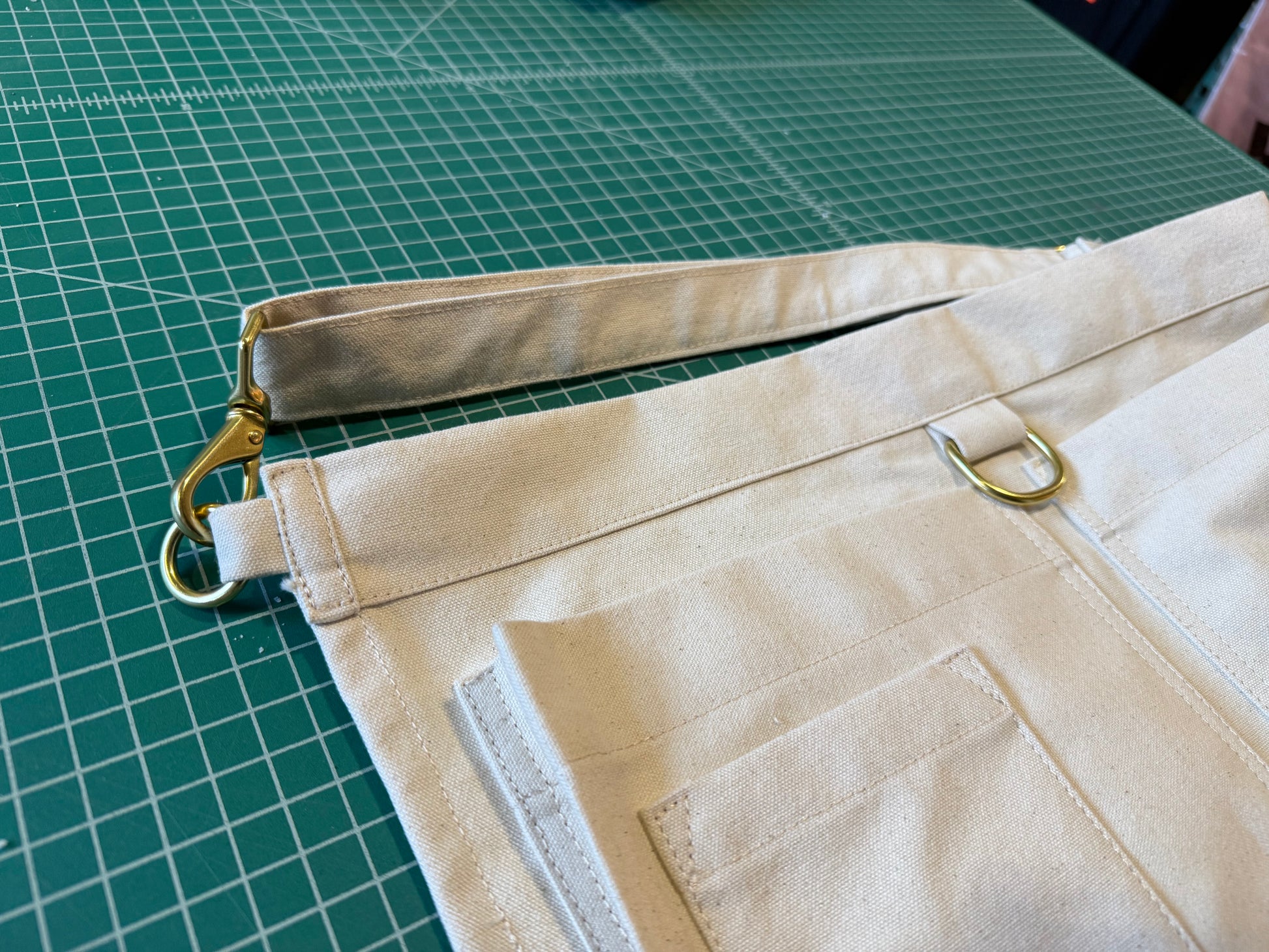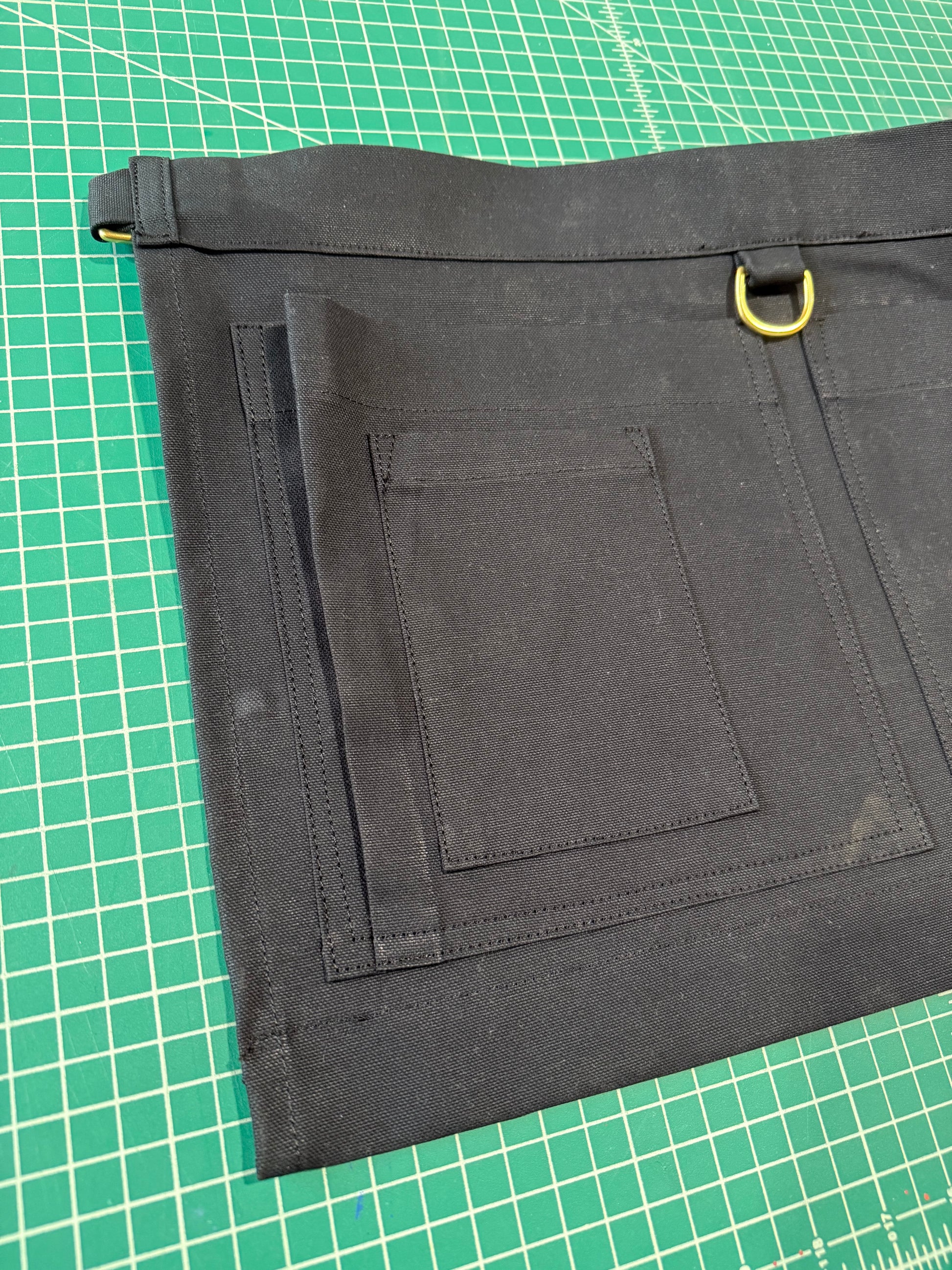 This simple but useful silhouette was designed with makers and workers in mind. Large patch pockets with a bit of depth allow you to hold anything from gardening shears to loose screws to measuring and marking tools to a server check book and wine key. Additionally there’s a tool holder on the belt and a d-ring front and center.